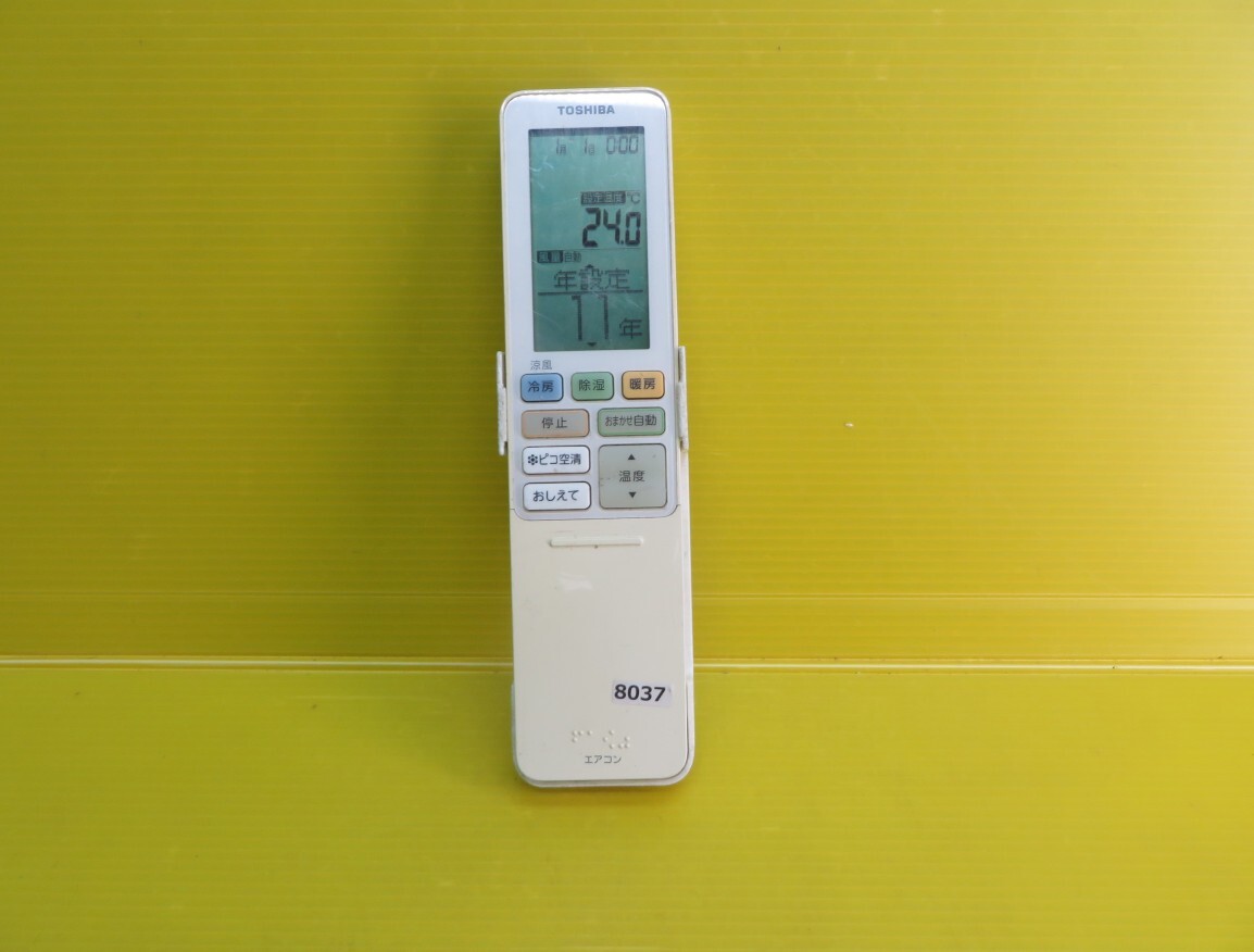 - T-8037■TOSHIBA 東芝 エアコンリモコン WH-RA04JJ■ホルダー付 動作品 保証付