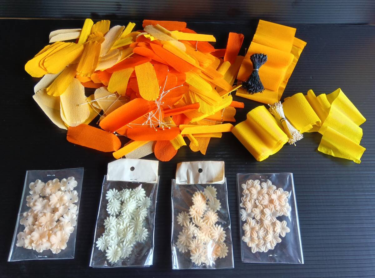 - 25041501 クラフトフラワーパーツセット オレンジ色メイン ハンドメイドフラワー 造花パーツ オレンジ花びら カット品