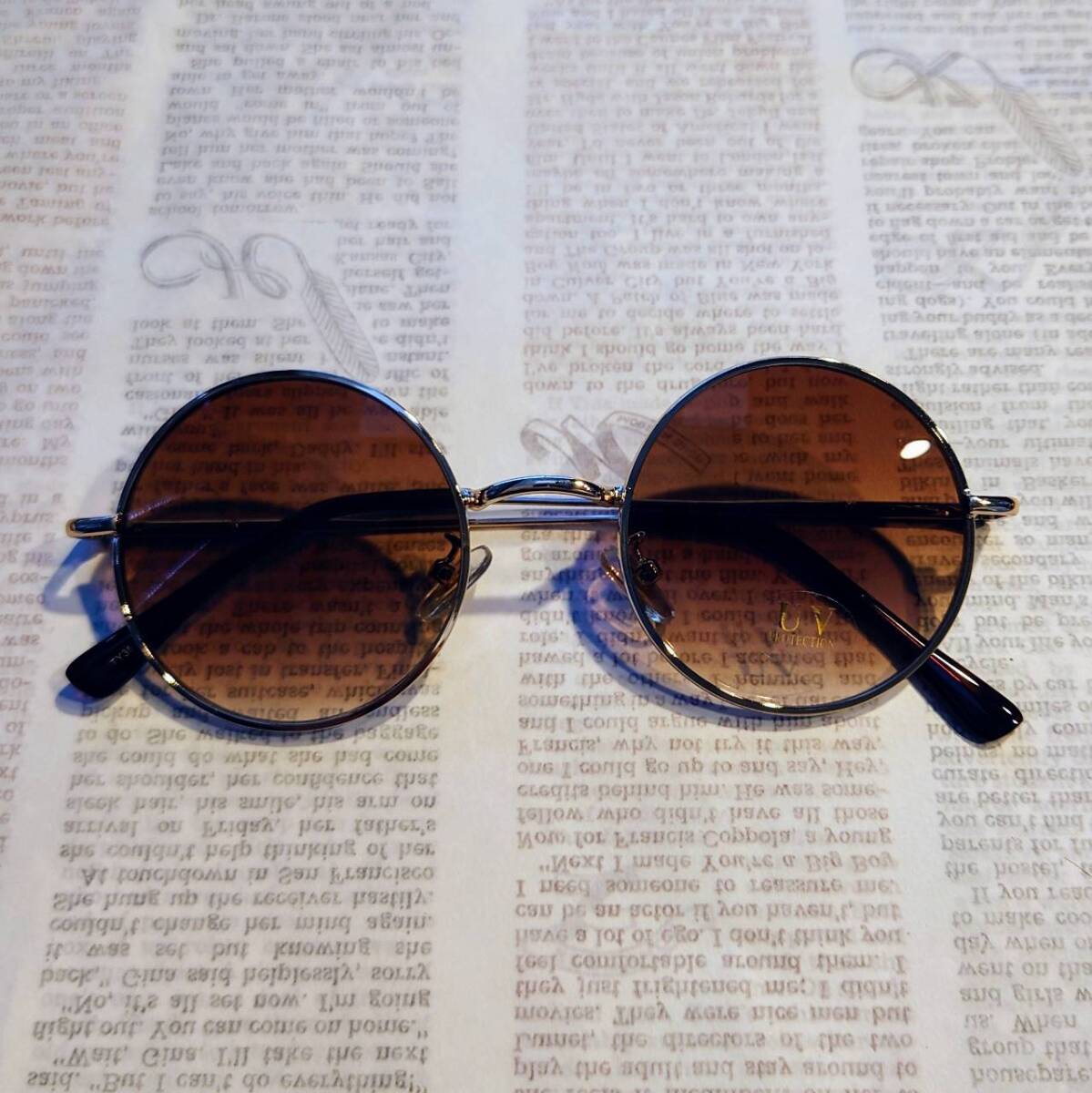 > 【新品未使用】サングラス レディース ラウンド 丸メガネ 細ぶち シルバーフレーム グラデーションレンズ UVカット / TY3519 ブラウン