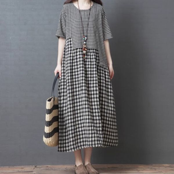 - ★★★レディース ワンピース ロング ラウンドネック チェック柄 FX39