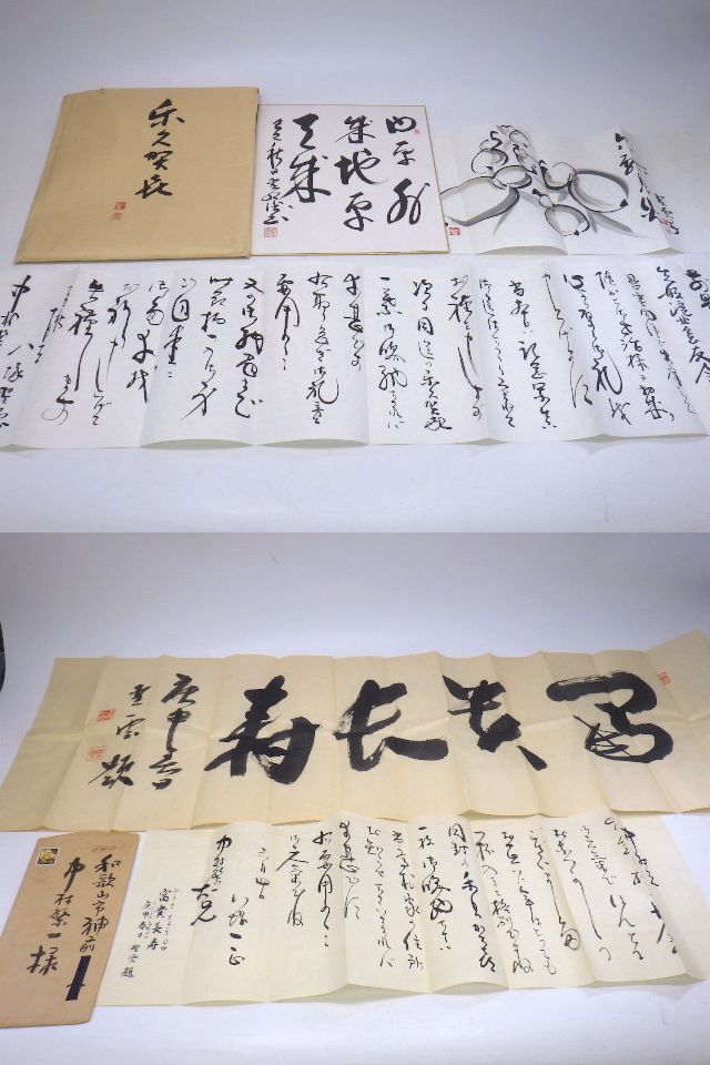 - h5D062R- 八塚聖雲・一正 色紙 書 書画 手紙 「無病息災」「富貴長寿」等