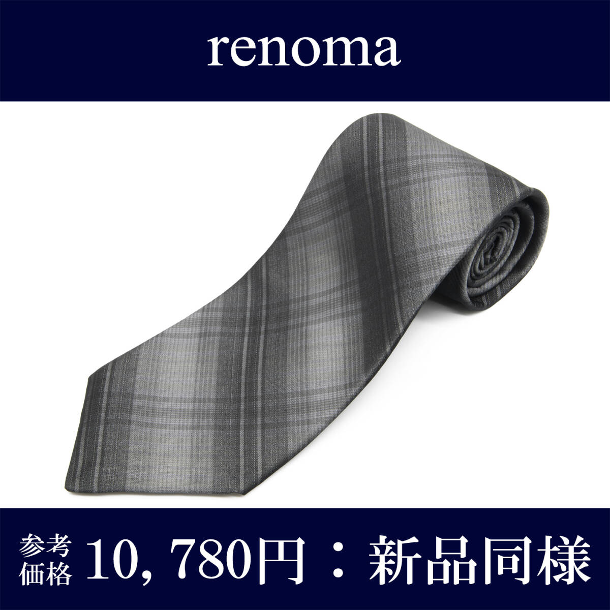 - 送料無料 レノマ ネクタイ 新品同様 シルク 黒 ブラック グレー ビジネス カジュアル ブランド 人気 チェック シンプル おしゃれ 綺麗 N706