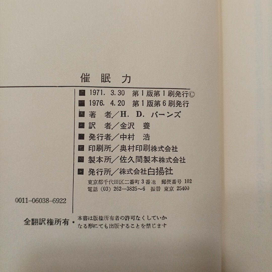 - zaa-635♪催眠力: 実用催眠法入門 H.D. バーンズ (著), H.D. Birns (原名), 金沢 養 (翻訳) 白揚社 (1976/4/20)