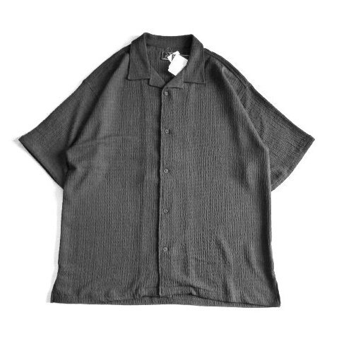 > 新品 FIxin‘ to start シャーリング 開襟 シャツ 半袖 メンズ L 黒 無地 紳士 透けない オーバーサイズ