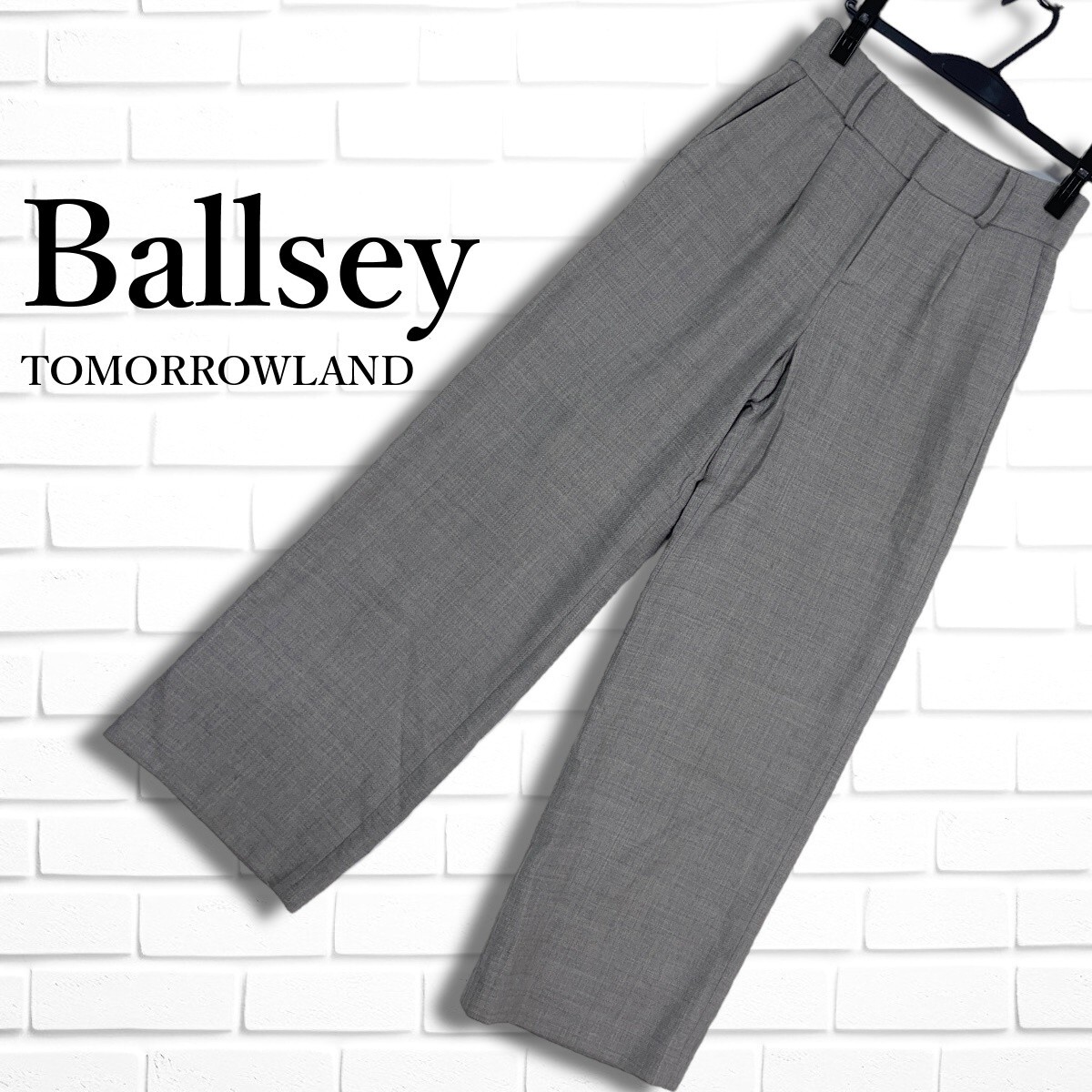 > ◆良品◆ Ballsey TOMORROWLAND ボールジー トゥモローランド ウール ストレッチ ワイド パンツ グレー レディース 32 ◆日本製◆ 2475D◇