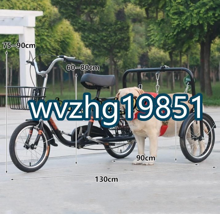- 折りたたみ式三輪自転車 つの収納バスケット付きデュアルブレーキ 三輪 自転車 大人用 中型および大型犬に適した犬の散歩付き U471