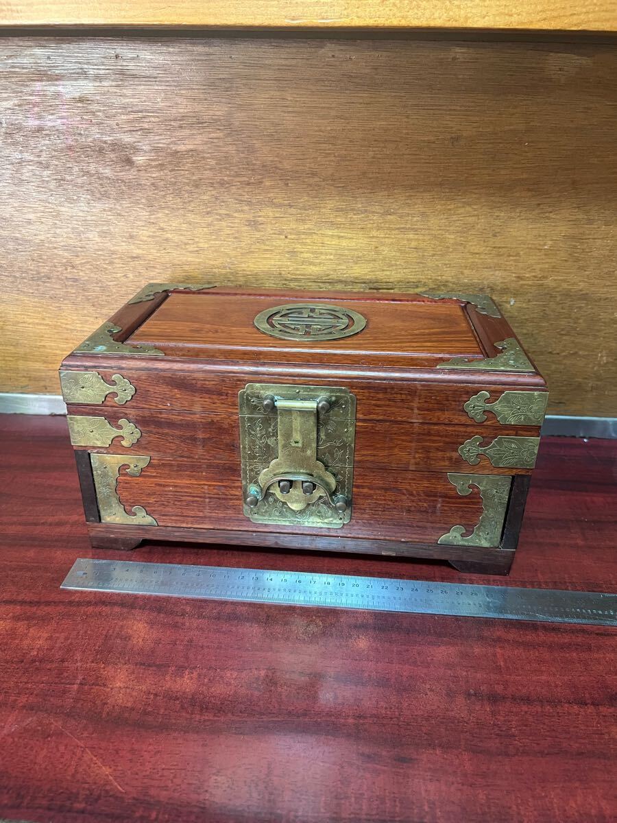 - 中国美術 木製 花梨木銅の装飾宝箱