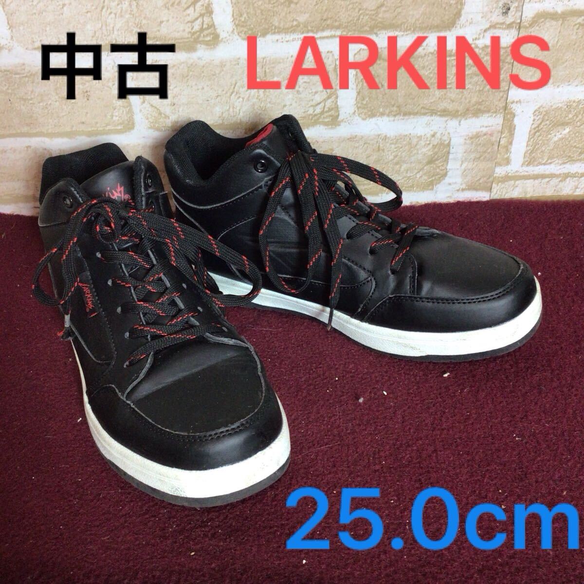 - 【売り切り!送料無料!】A-339 LARKINS!ハイカットスニーカー!25.0cm!黒!ブラック!赤!おしゃれ!かっこいい!中古!