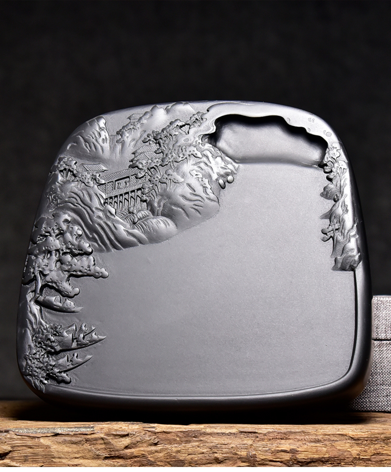> 硯 佳品 無形文化遺産 歙硯 原石 《漁と歌の夜硯》(長さ14.0幅13.0高さ2.3cm)雕刻 天然 原石 收藏 書道 絵画 文房四寶 老坑 原石