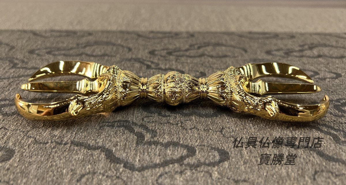 - 密教法具 三鈷杵 大々型 蓮華 筋彫 鬼面 仏具 真鍮製 【送料無料】【仏具仏像専門店寶勝堂】