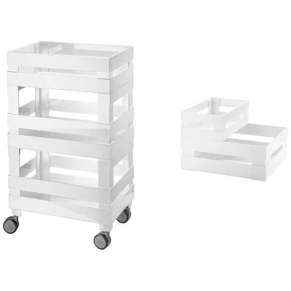 > ②【店頭展示未使用品】キッチントロリー3段&ユニバーサルボックス 2P TIDY&STORE ホワイト 85834 グッチーニ|GUZZINI