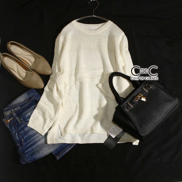- 未使用 定価13500円 COUP DE CHANCE クードシャンス ☆☆ 大人可愛い ボーダー編み コットン ニット セーター M 春 秋 オフホワイト 25C03