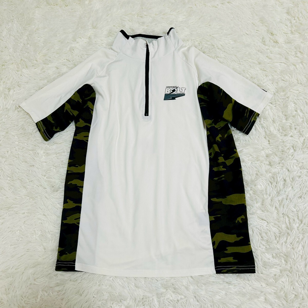 - lightning bolt ライトニングボルト カットソー ハーフジップ 迷彩 半袖シャツ スポーツウェアホワイト サイズM
