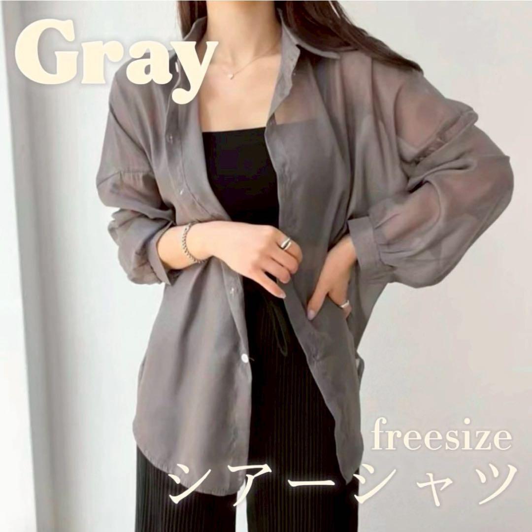 - シアーシャツ 長袖 シフォン シースルーシャツ 透け感 無地 シンプル グレー