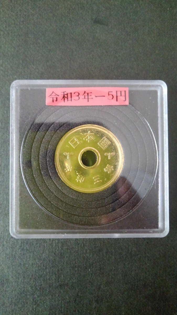 - 超格安オークションスタート!!準特年-令和3年-5円黄銅貨幣-クッション入りプラスチックコインケース入り!
