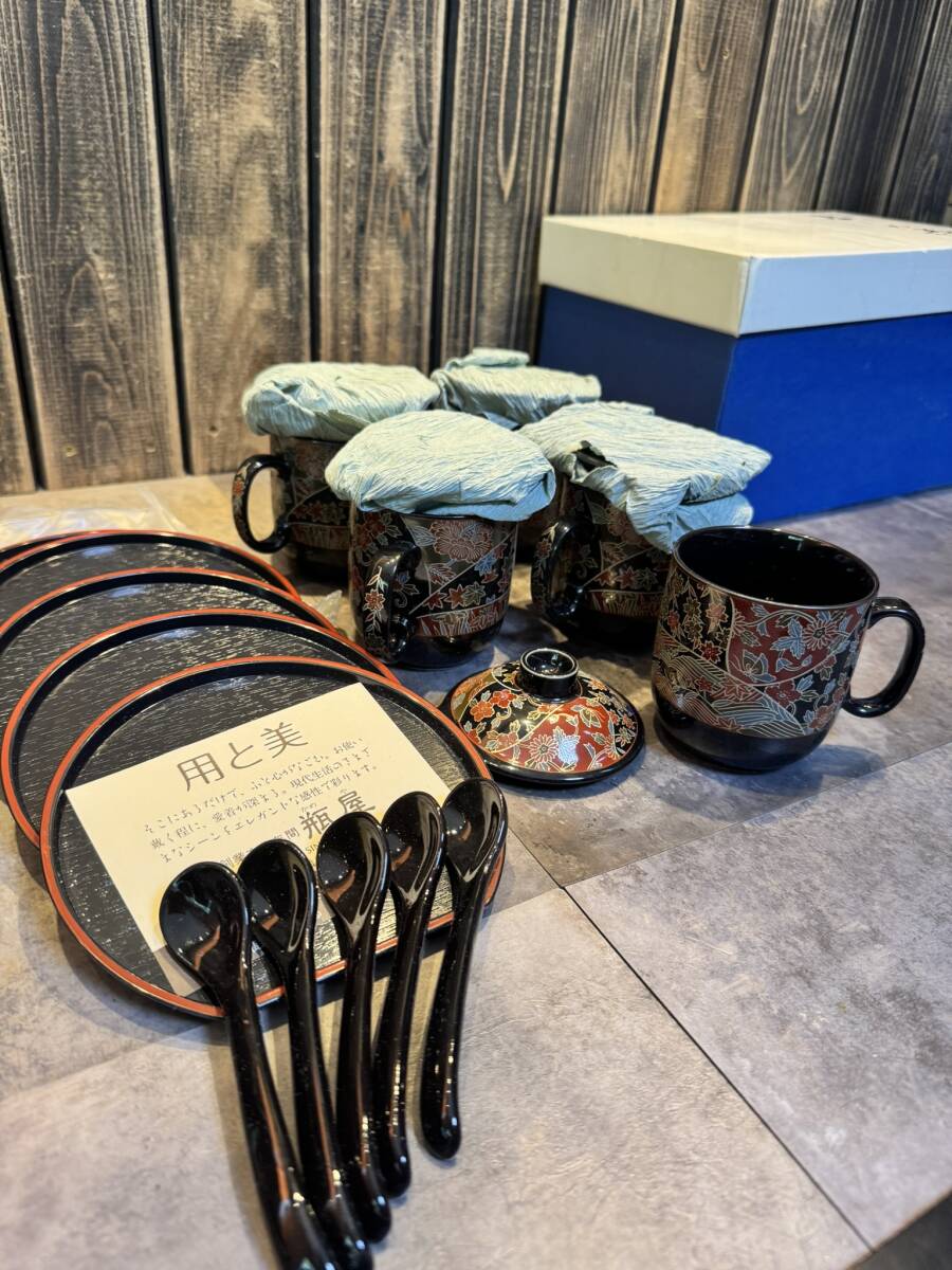 - 【瓶屋 用と美】 暮しの器 湯飲みセット 茶托付き 茶碗 皿 湯呑み 茶碗蒸し 5客 陶器 食器|未使用