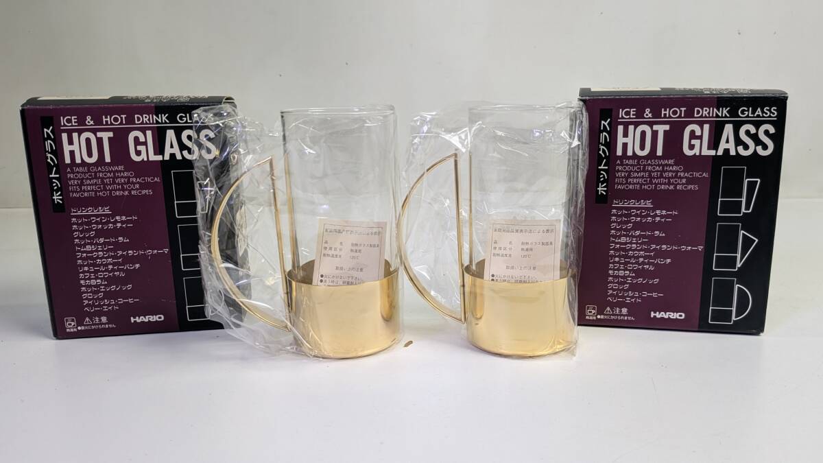 - □[未使用品]HARIO HOT GLASS ハリオ サークルゴールド HW-8 二個セット 225ml / 8oz. 100×60×123mm