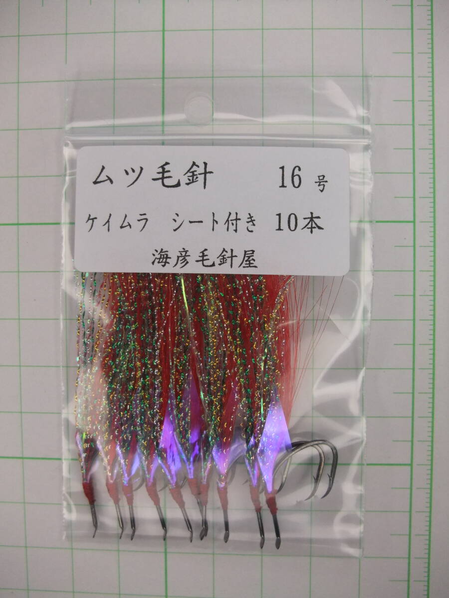 - 16AK ムツ16号毛針 赤フラッシャー ケイムラシート付き 10本セット