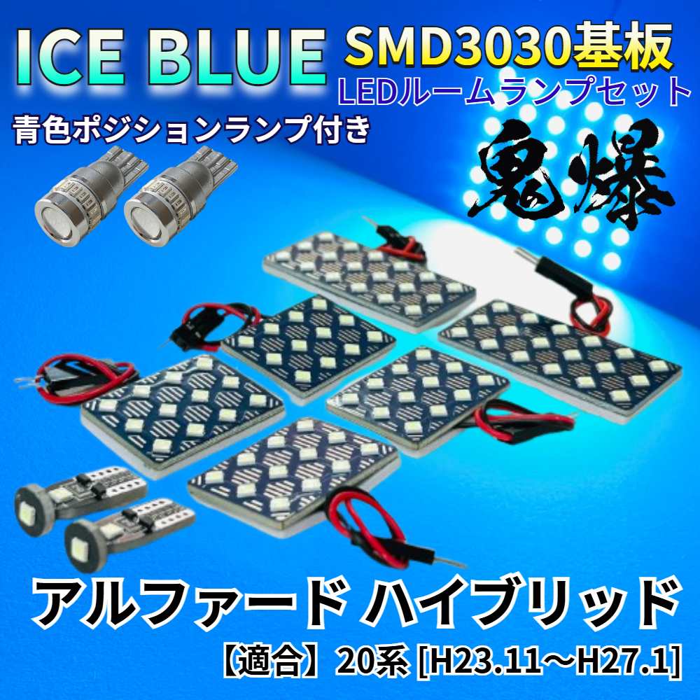 > 【アイスブルー】アルファードハイブリッド 20系 鬼爆基板 3030SMD LED ルームランプ スモールランプ 車内灯 室内灯 パーツ アクセサリ