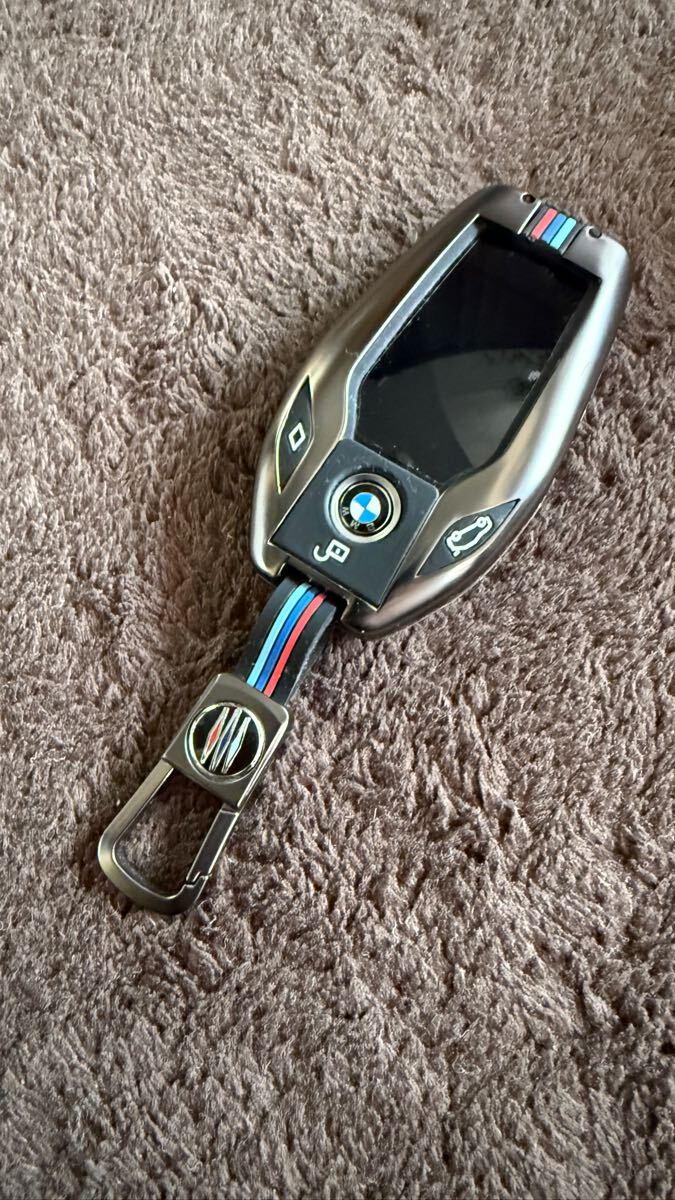 > 美品 BMW 7シリーズ G11 液晶リモコンキー用 金属カバー チタン色 ジャストフィット カラビナ付き Mデザイン キーカバー キーケース