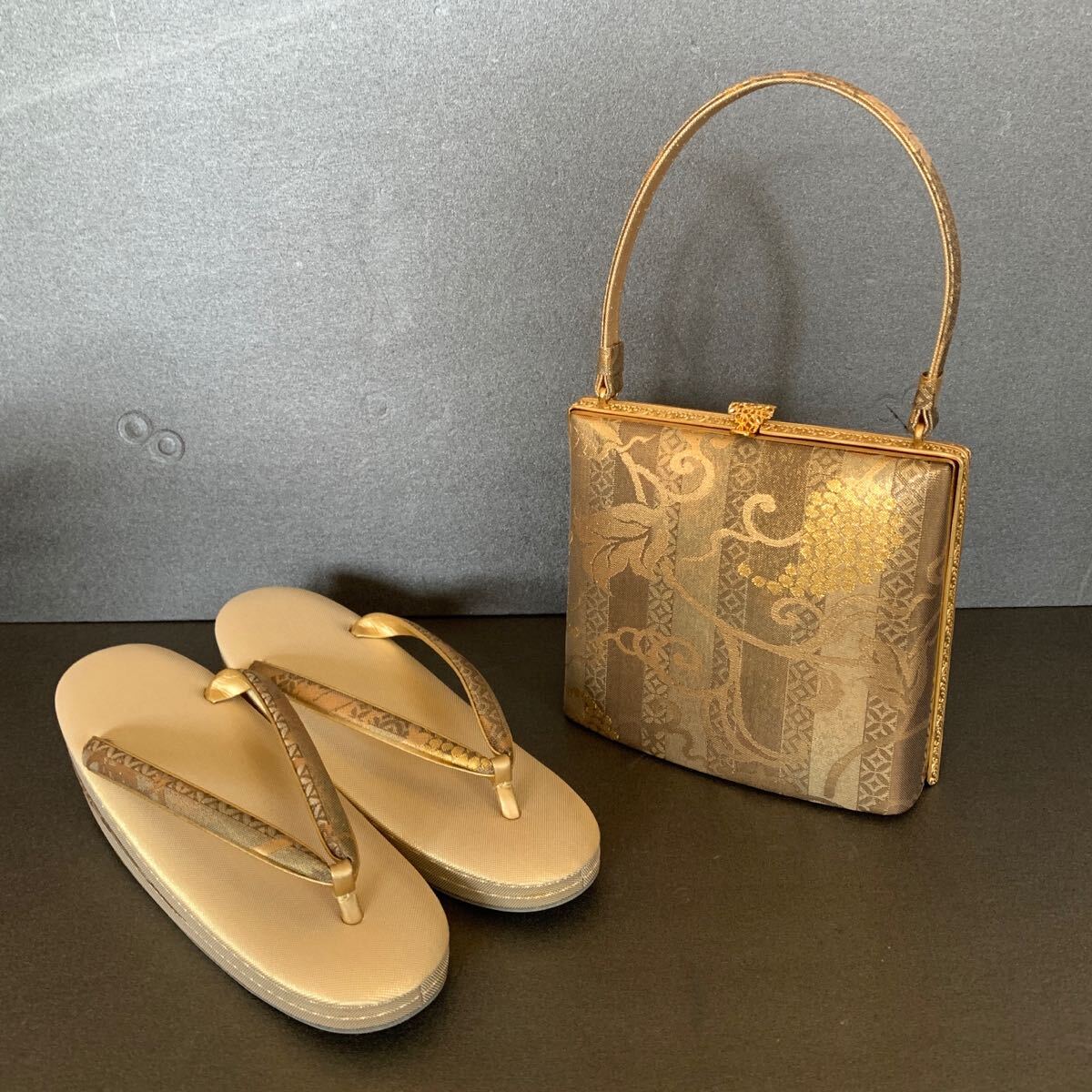 - 新品未使用 和装バッグ&草履 岡重 草履…23.5㎝ 和装バッグ…横18㎝×縦17㎝ 定価128,000円