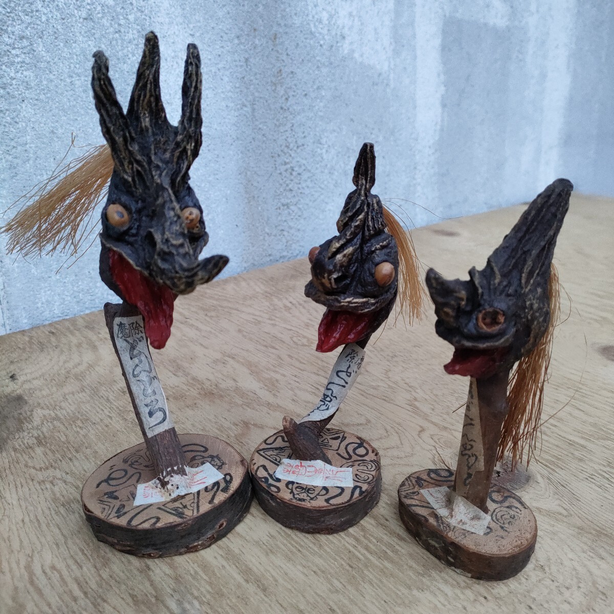 - 【希少/廃絶】どんどろ3体セット 高さ13.5cm14cm17.5cm 郷土玩具 大久保喜生 魔除 民芸品 妖怪 静岡県伊東市 伊東温泉 張子 土人形 送料込