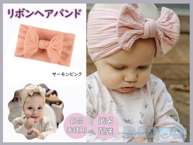 - ベビー ヘアバンド リボン 可愛い コットン素材 サーモンピンク 1枚 赤ちゃん ヘアアクセサリー バンダナ オールシーズン 高品質素材