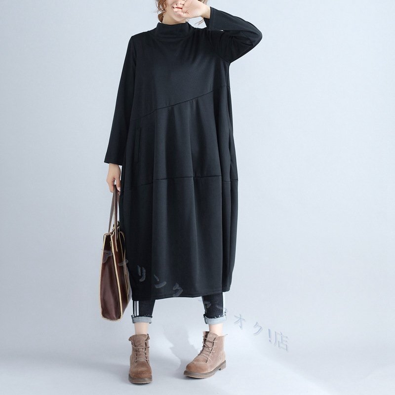 > ワンピース レディース ロング ロング丈 長袖 Aライン 秋 冬 春 厚手 大人 きれいめ カジュアル かわいい おしゃれ ブラック L