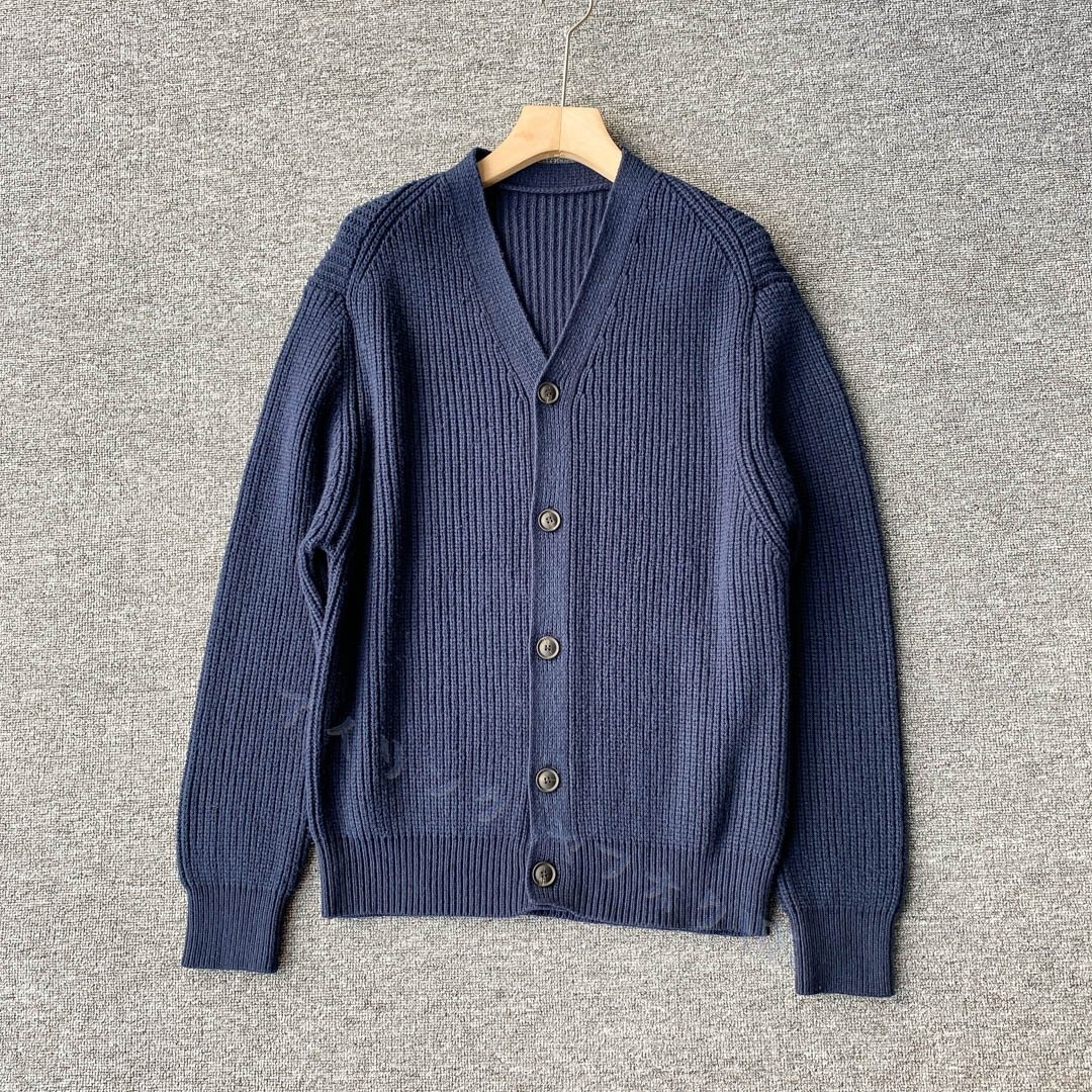 - 紺色 「暖かくて軽い」 国内未販売 メンズ ウール混 カーディガン 極暖 高級感 秋冬 ウールのセーターカーディガン ニット