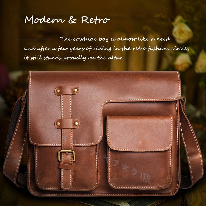 - メンズバッグ 本革 レザー ショルダーバッグ 斜め掛けバッグ メッセンジャーバッグ iPad対応 ビジネスバッグ 通学 通勤 ブラウン