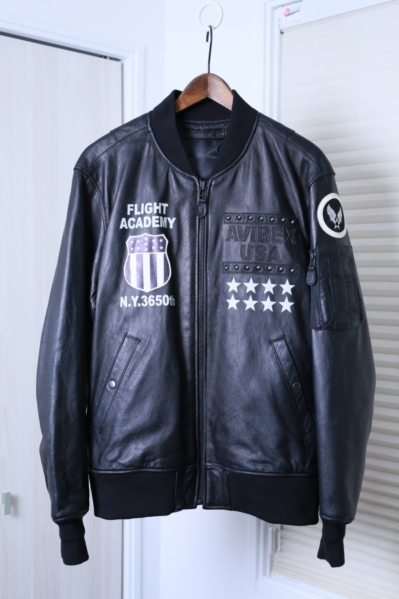プリントスタッズワッペン加工ジップアップミリタリーレザーブルゾン