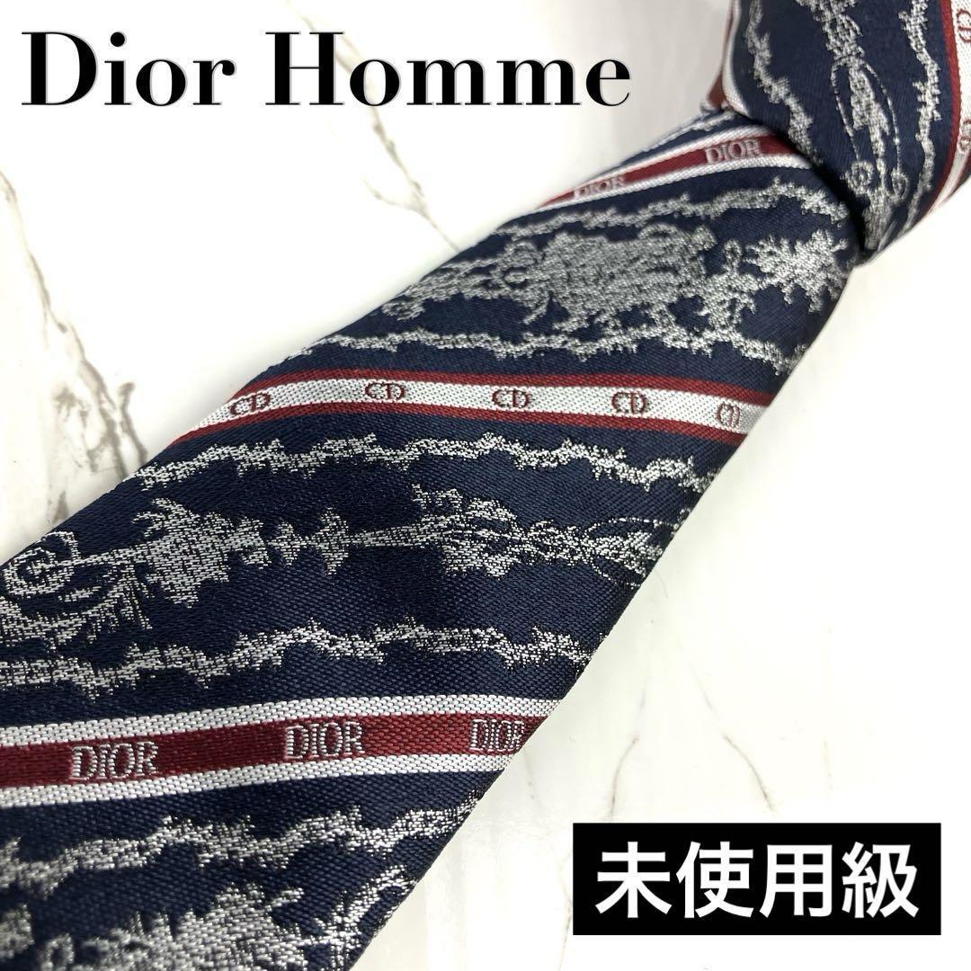 - 未使用級 Dior Homme ディオールオム ネクタイ トワルドゥジュイシルク ストライプ ジャガード ネイビー