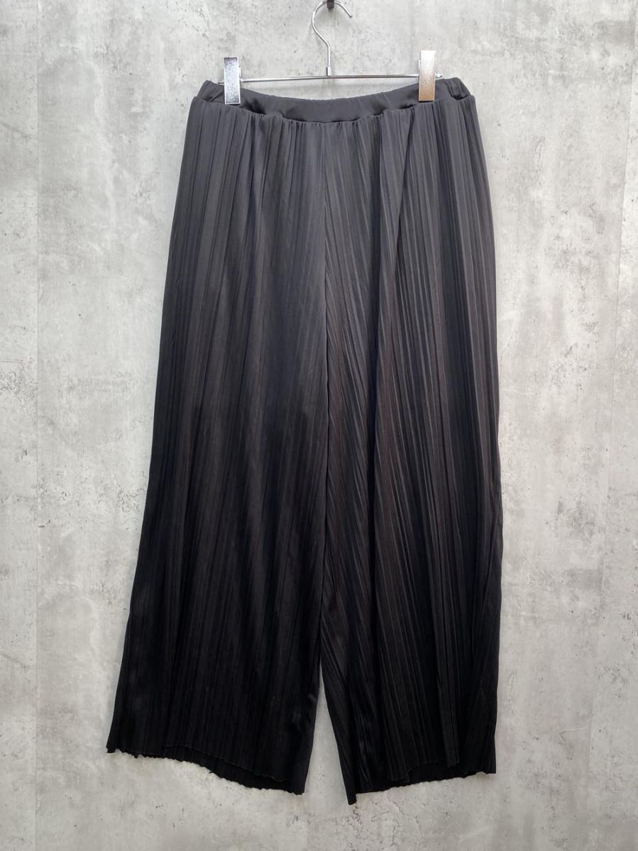 - ゆうパケットOK antiqua アンティカ AY-00021 イージー ランダムプリーツサテンパンツ sizeF/黒 ■◆