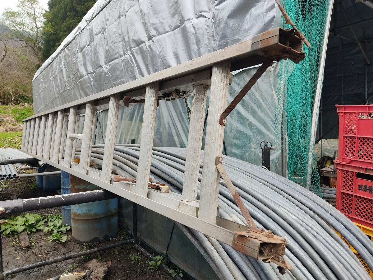 - 引取限定 二連はしご ハシゴ 梯子 激安ジャンク品 雨避けハウスの登り降り用等にでも