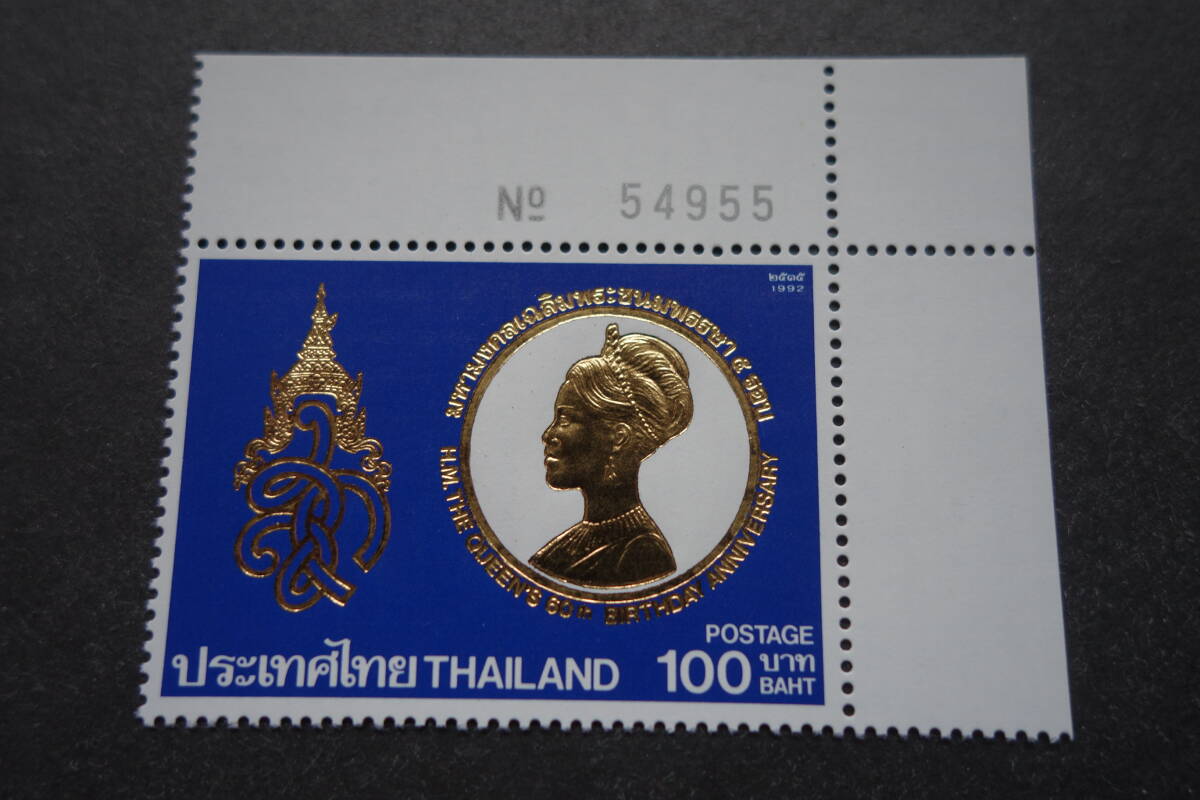 - 外国切手: タイ切手 「シリキット王妃60歳誕生日」高額面 金色箔使用 1種完 未使用