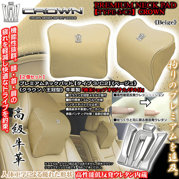 - 220/20クラウン/クラウン王冠型エンブレム付/タイプ3・C2/プレミアムネックパッド/ベージュ2個/低反発ウレタン/牛革調パンチング