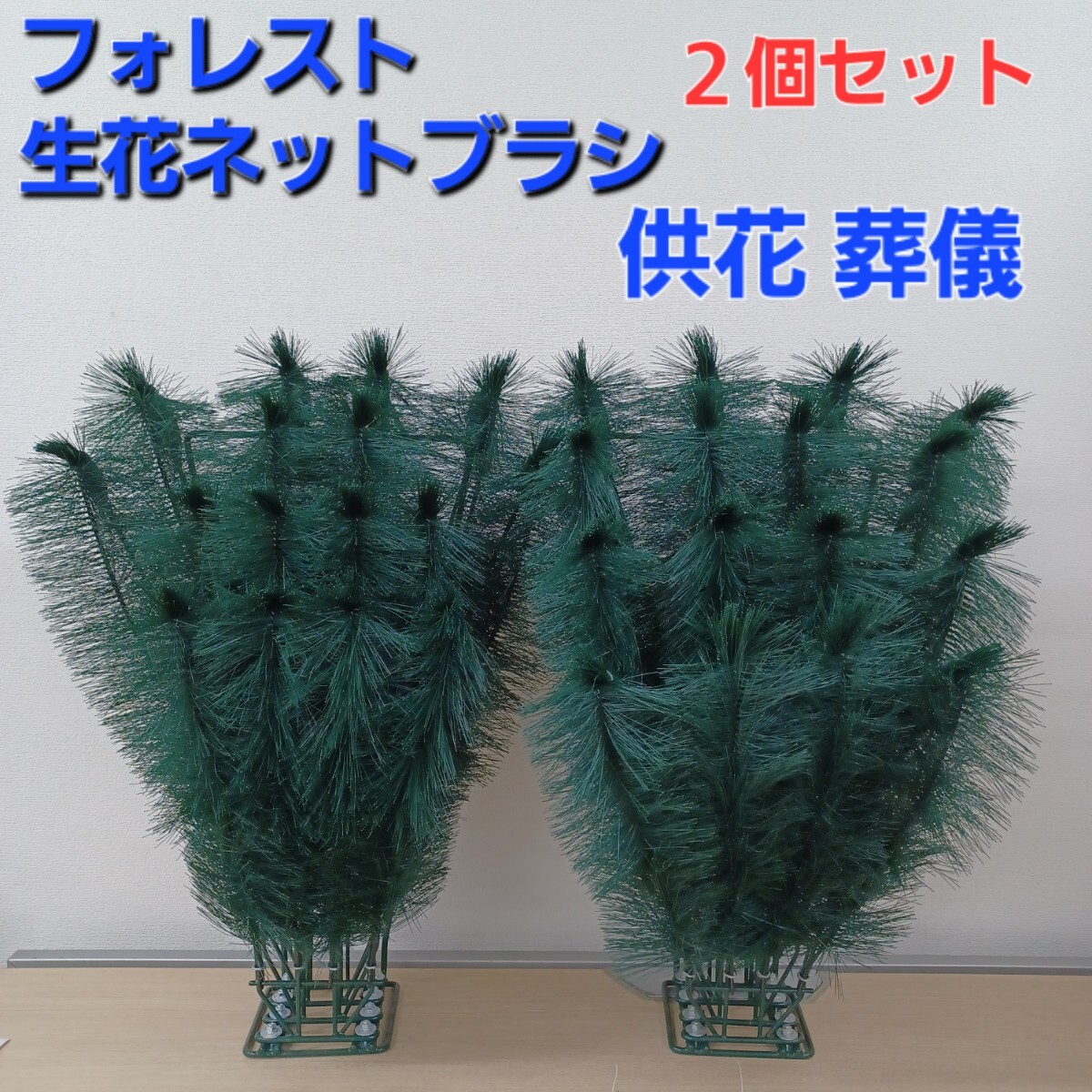 - 石)① フォレスト 生花ネットブラシ 2個セット 供花 フェイクグリーン 祭壇 葬儀 仏具 緑 お供え 250424