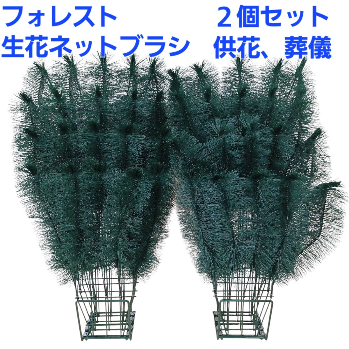 - 石)① 大 フォレスト 生花ネットブラシ 2個セット 供花 フェイクグリーン 祭壇 葬儀 仏具 緑 お供え 250424