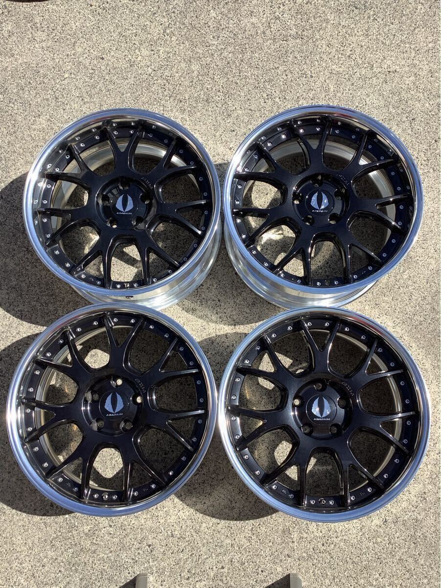 > ★簡易洗浄済★ AIMGAIN エムゲイン GIIM アルミホイール (前 18×8J+45 114.3-5H (後 18×9J+45 114.3-5H 中古品4本