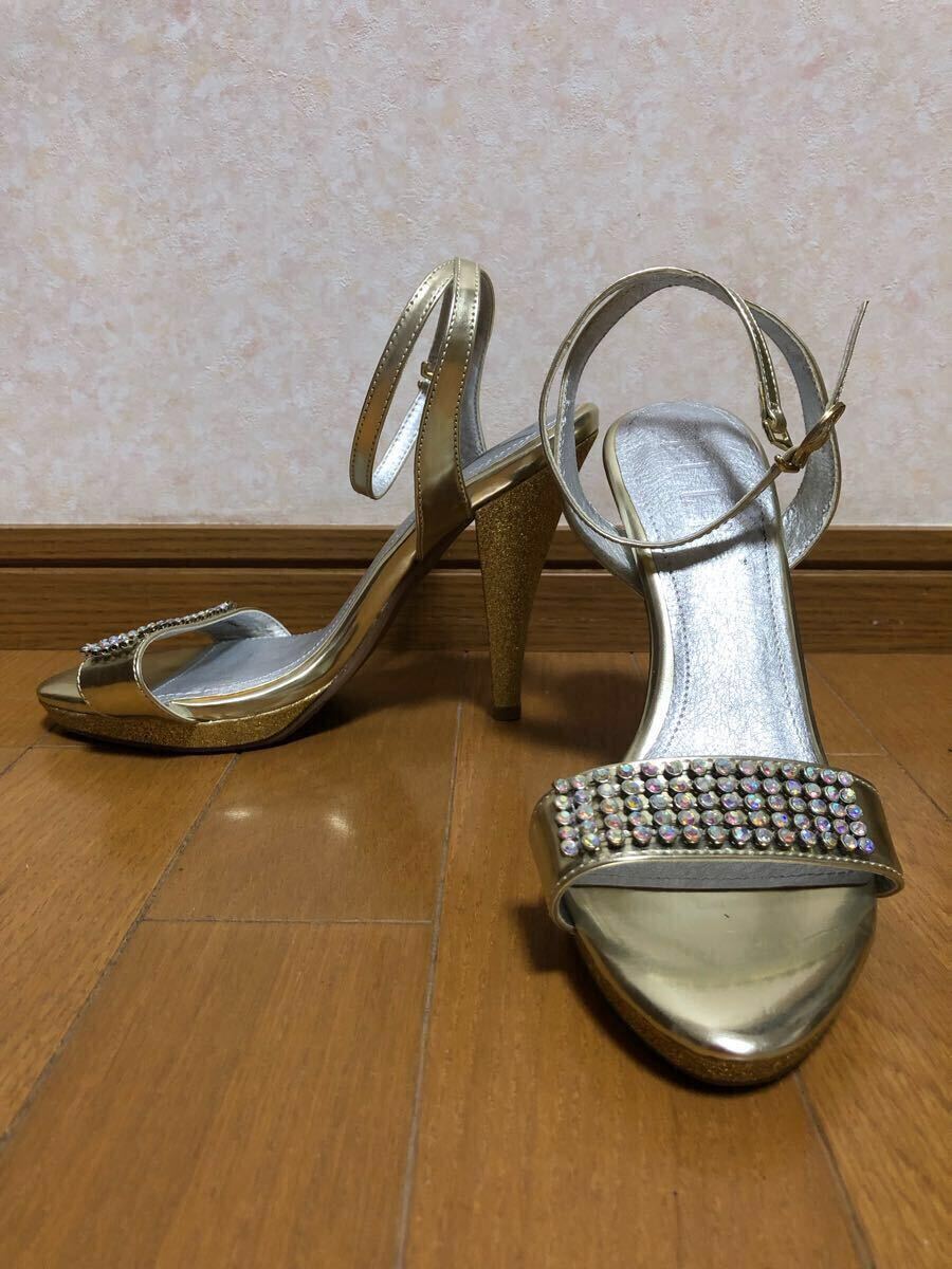 - ◆ELLE◆ラインストーン付サンダル◆アンクルストラップ ゴールド 美脚