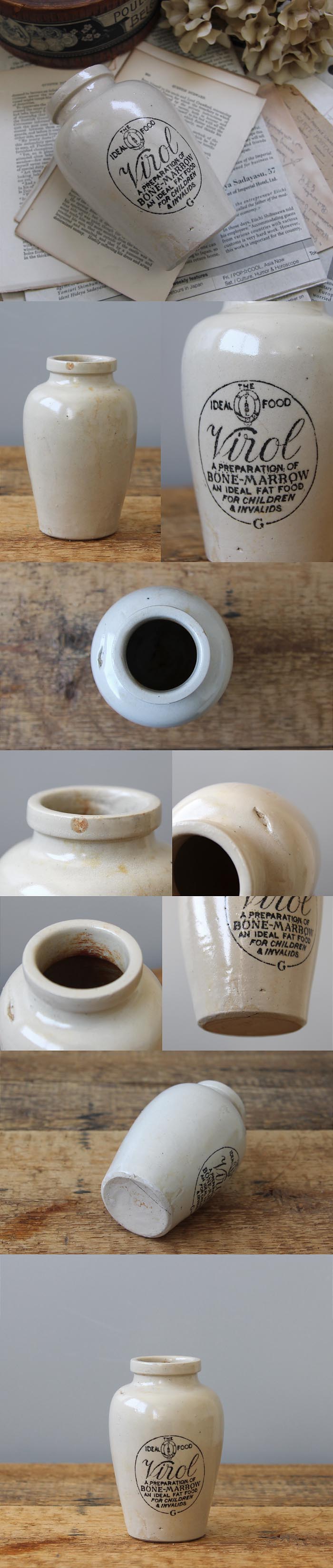 - イギリス アンティーク ヴァイロールボトル Virol 陶器ボトル インテリア 雑貨 店舗什器 K-390