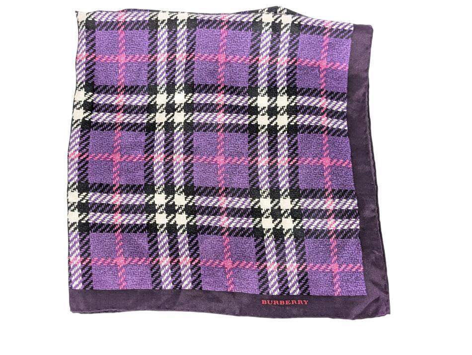 > バーバリー スカーフ ハンカチ 大判 57cm パープル チェック 絹 シルク レディース BURBERY 【中古】