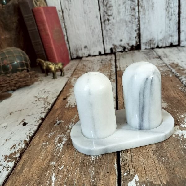 - ヴィンテージ ミニマル マーブル ソルト&ペッパー シェイカー 大理石 塩胡椒入れ キッチン シンプル ビンテージ アンティーク 古道具