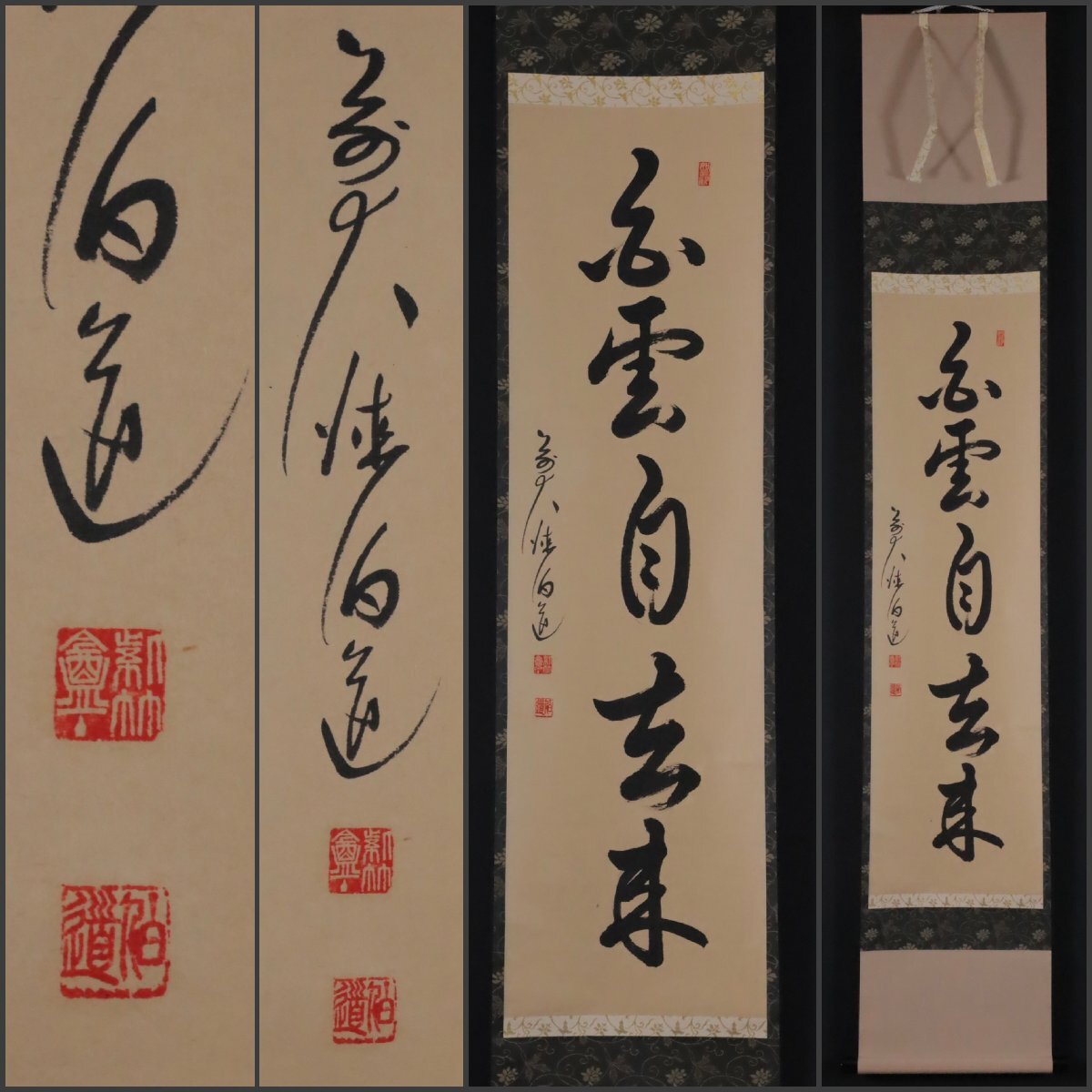 - 【模写】吉】12286 平兮伯道 書「白雲自去来」 臨済宗 大徳寺派 渓雲寺 仏教 茶掛け 茶道具 禅語 掛軸 掛け軸 骨董品