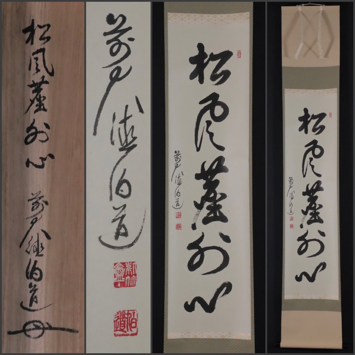 - 【模写】吉】12287 平兮伯道 書「松風塵外心」 共箱 臨済宗 大徳寺派 渓雲寺 仏教 茶掛け 茶道具 禅語 掛軸 掛け軸 骨董品