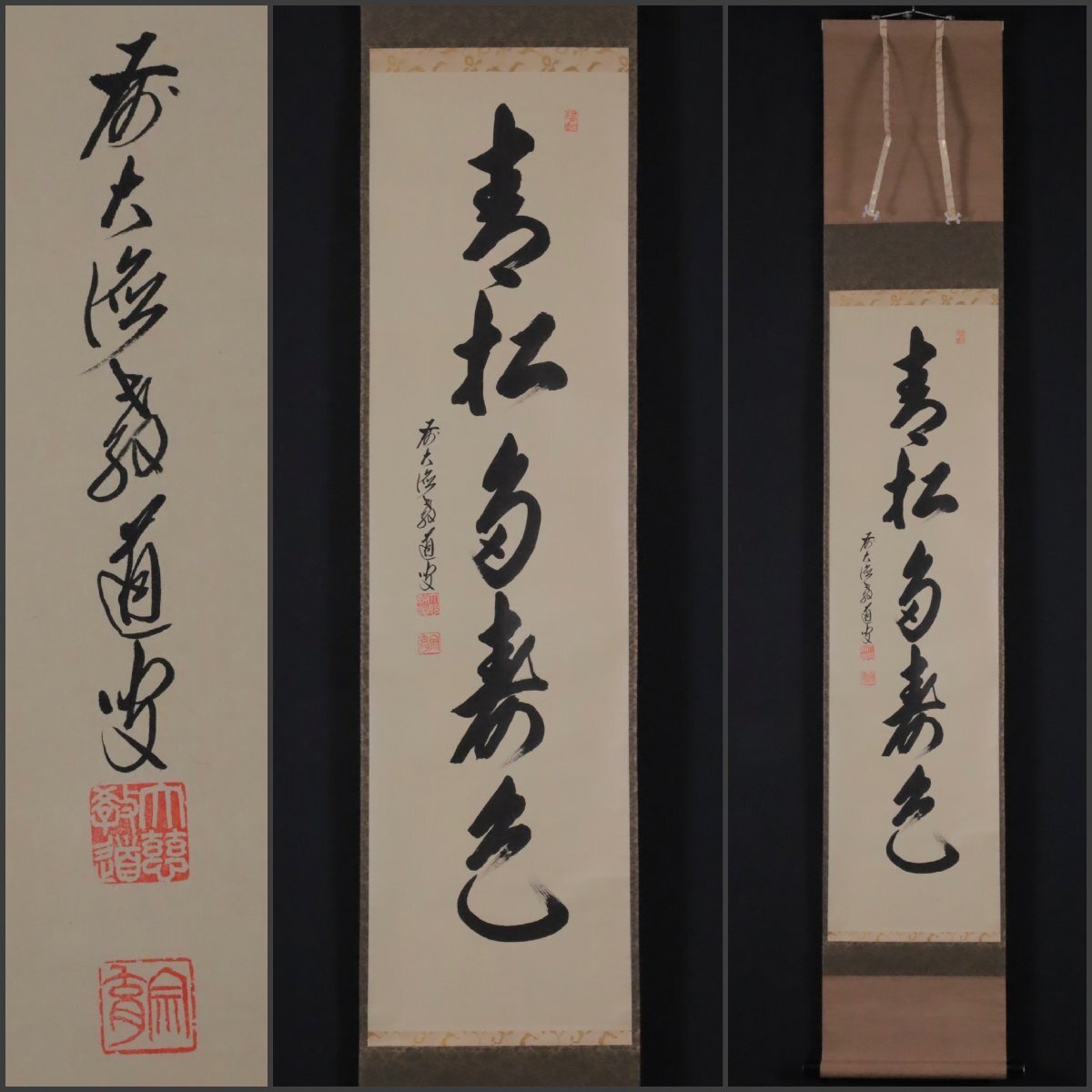 - 【模写】吉】12293 教道宗育 書「青松多寿色」 上坂教道 臨済宗 大徳寺 大慈院住職 仏教 茶掛け 茶道具 禅語 掛軸 掛け軸 骨董品