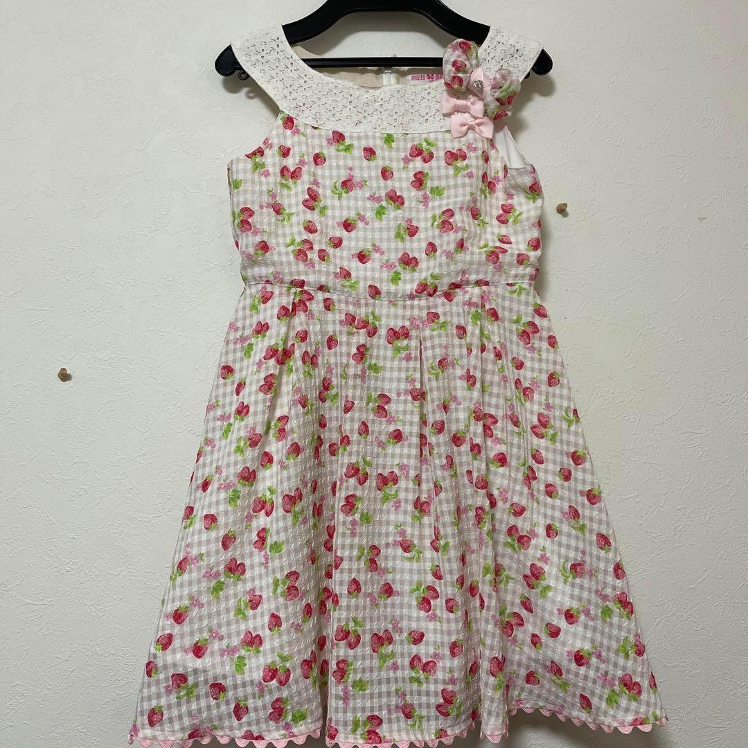- ★美品★メゾピアノ★mezzo piano★苺柄イチゴ★ワンピース★サイズ140㎝