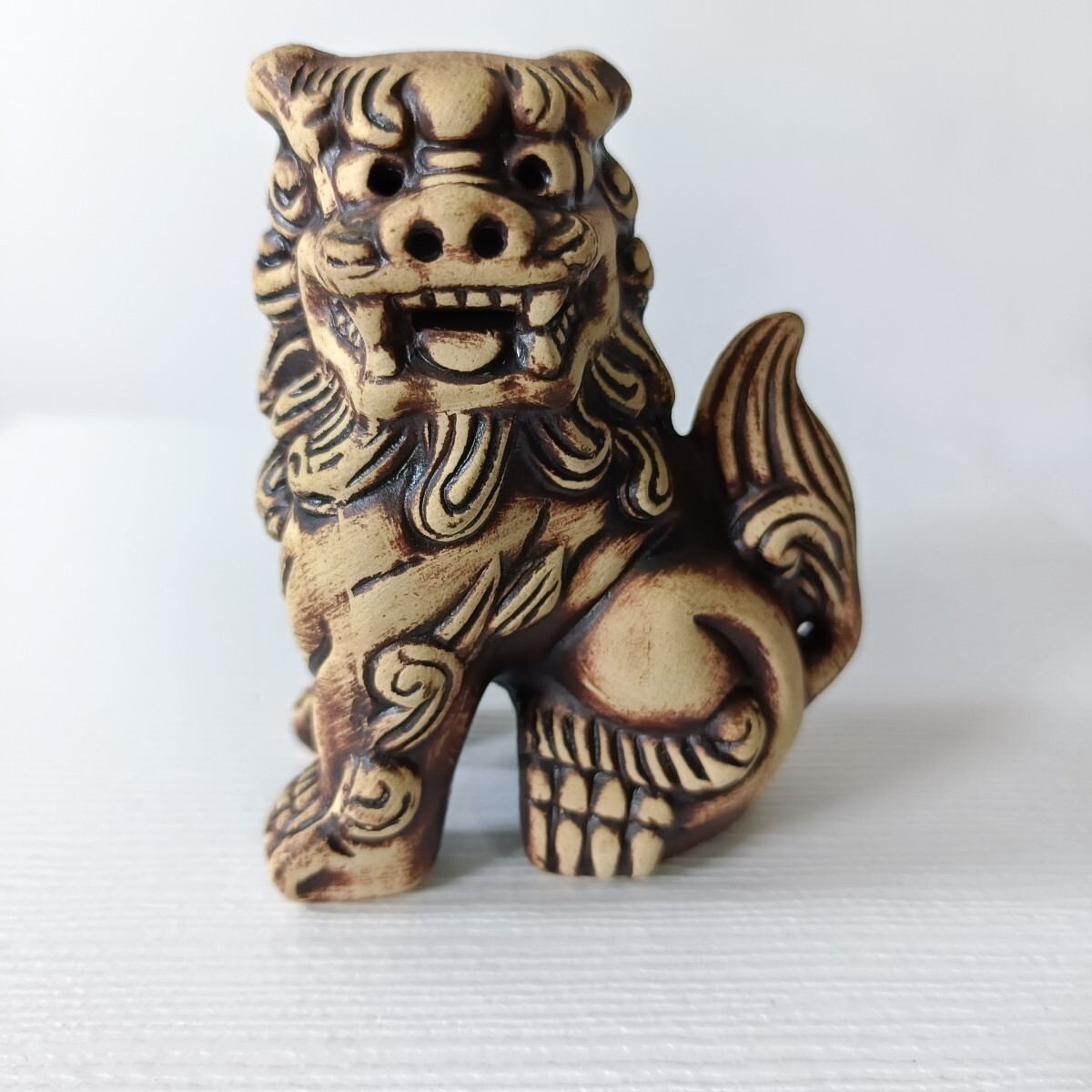 - 獅子 狛犬 シーサー 素焼き 置物 高さ9.5cm [魔除け 陶器 沖縄 土産物]