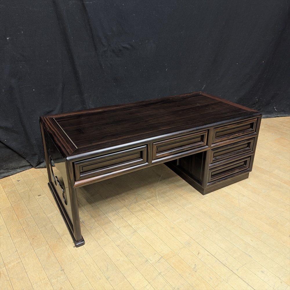 ★唐木★黒檀 黒丹★無垢★ 文机 片袖 座敷机 書机 帳簿机 座机 引き出し 抽斗 和家具 座敷 民芸 民藝 紫檀