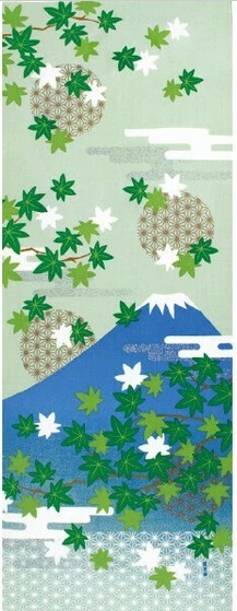 - 濱文様 絵手ぬぐい 2025年新作 夏もみじと富士山 あじさい 手拭い 90×34cm 夏 初夏 春